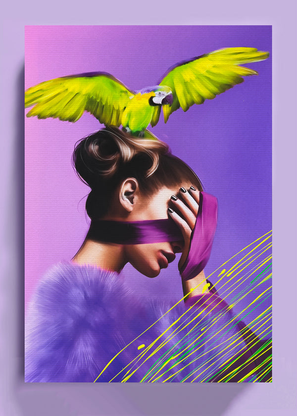 "Fears" is an original 1/1 picture on canvas in size 70x100cm, where Linn has used the technique of digital drawing combined with acrylic paint. The picture is signed and it also comes with a certificate showing that you own the original work. The price includes 5% BKH tax.