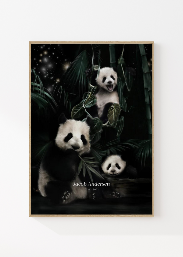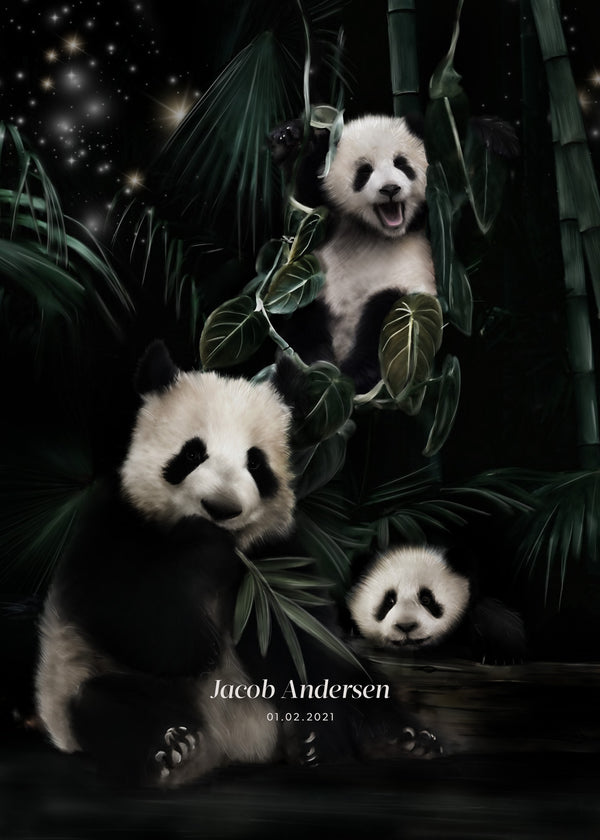 Say hello to Po the panda and her cute little ones who are tall and short. A perfect gift for a maternity, christening, name day or birthday! Make the poster extra unique and personal by adding your first name and date of birth or last name, or any other text you wish. Personalized posters have a delivery time of 7-10 business days.