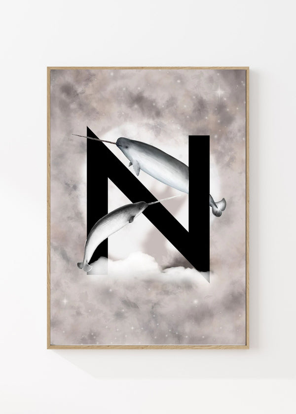 Poster with the letter N! Perfect wall decoration for the children's room. Select the desired size below. Note! This poster is just the letter N, without personal text/name.