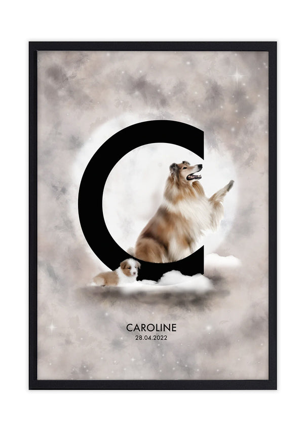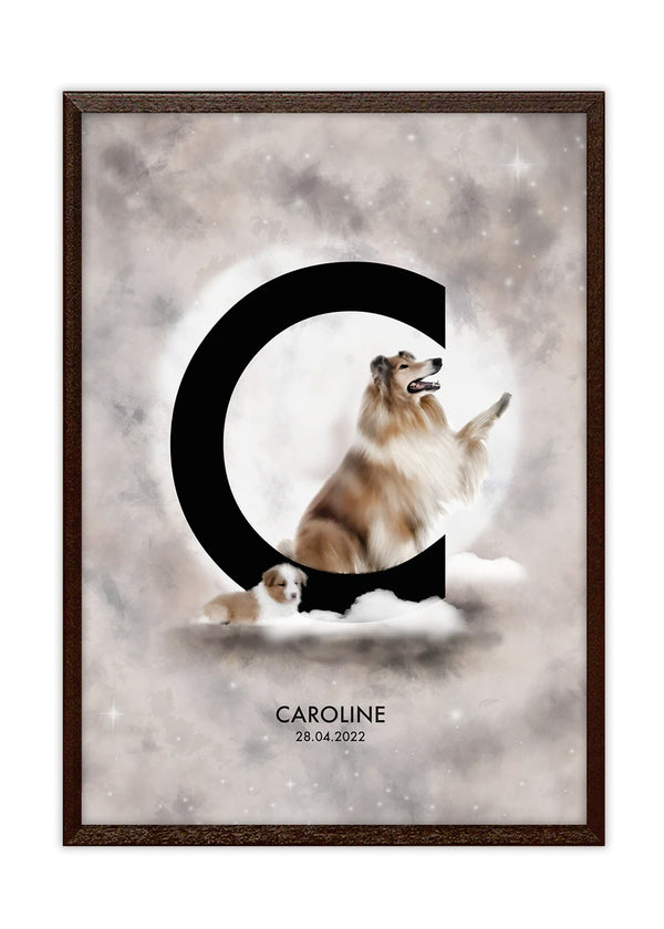 Personalized wall decoration for the children's room. Poster with the letter C and a large and a small Collie! Choose the desired size below and add the desired name/text. Delivery time 7-10 days.
