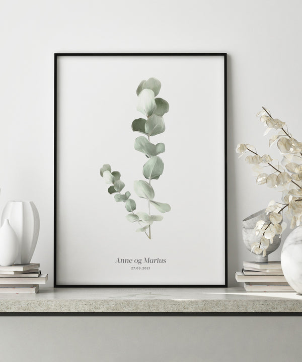 Eucalyptus is so beautiful! A perfect poster if you are looking for something simple and stylish to hang on your wall. A stylish poster that is perfect for a wedding sign or on your wall. Get this poster with the text you want to make it even more personal for you or someone you love. Enter the desired personal text below. Personalized posters have a delivery time of 7-10 business days.
