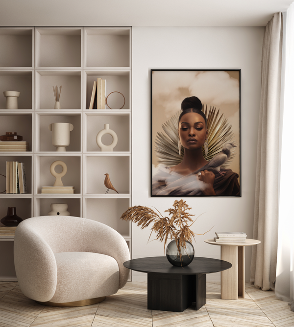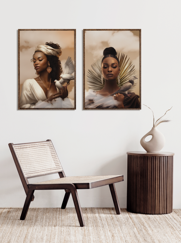 This artwork oozes girl power. Get an extra boost of inspiration by having this on the wall! Perfect if you want to add some subdued but bold glamor to the interior. With its strong expression, but at the same time lovely neutral expressions, this image makes just the right big statement. Whether for the living room wall or the bedroom, this poster is sure to attract attention and give the room a feeling of warmth and well-being.