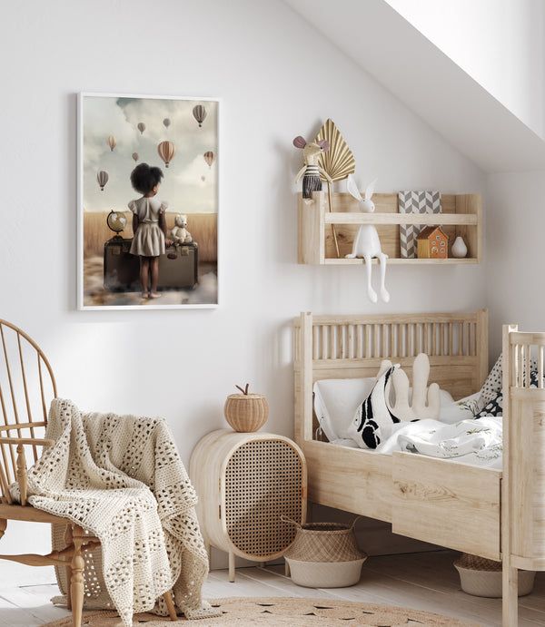 This little girl has the whole world before her and is ready to conquer it with her strength, wisdom and joy. This is the perfect inspiration for a children's room, and it reminds us that no dream is too big when you have faith in yourself.