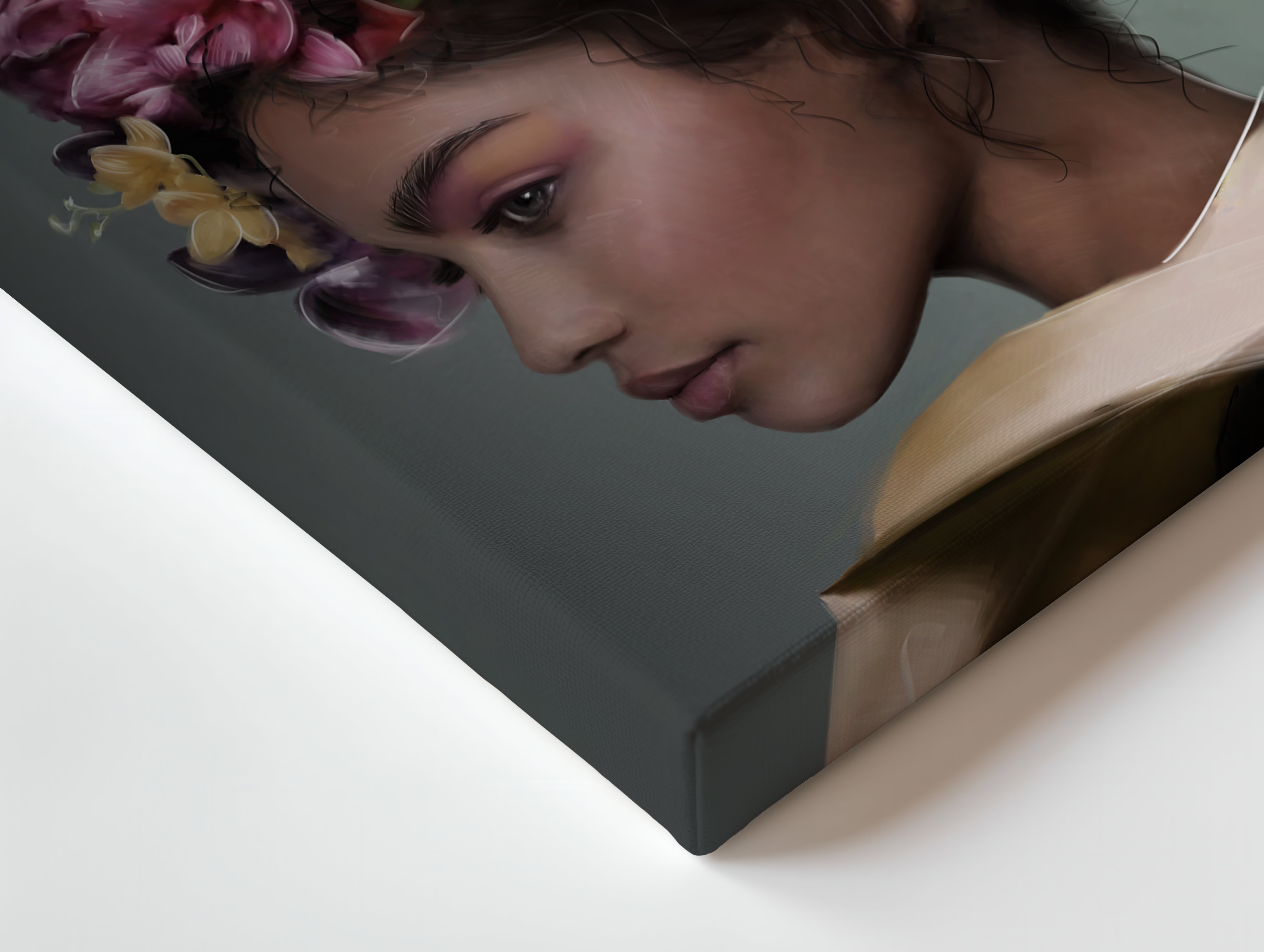 Lerretet er laget i en slitesterk blanding av bomull og polyester, med en nydelig matt/sateng-finish som gir motivet en elegant glød uten reflekser.