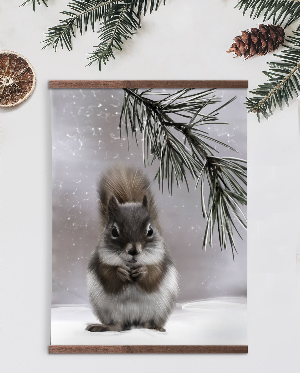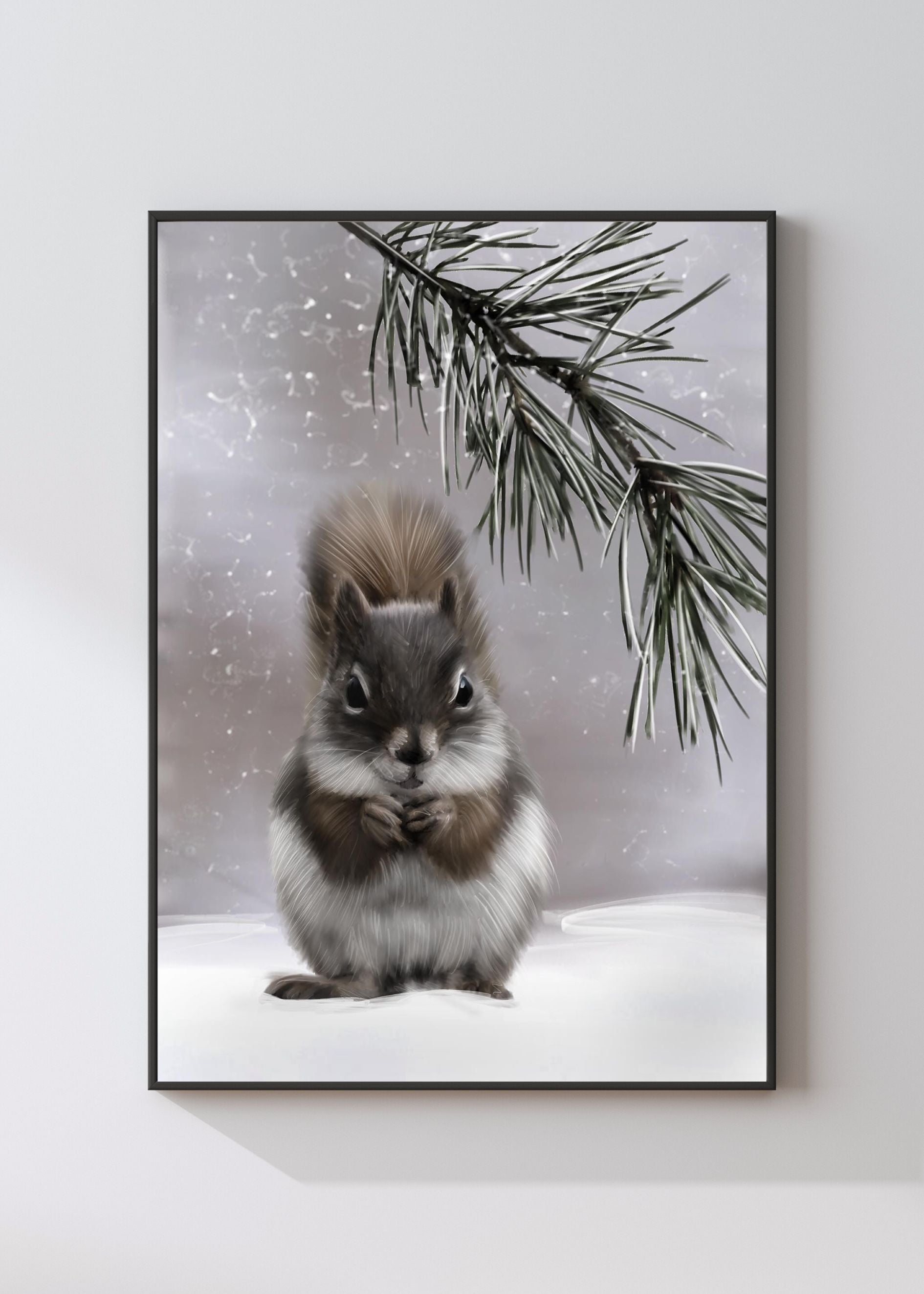 Se på dette søte ekornet, et nydelig tilskudd til et barnerom eller sesongbasert pynt på veggen! Kommer i størrelse opp til 50x70cm