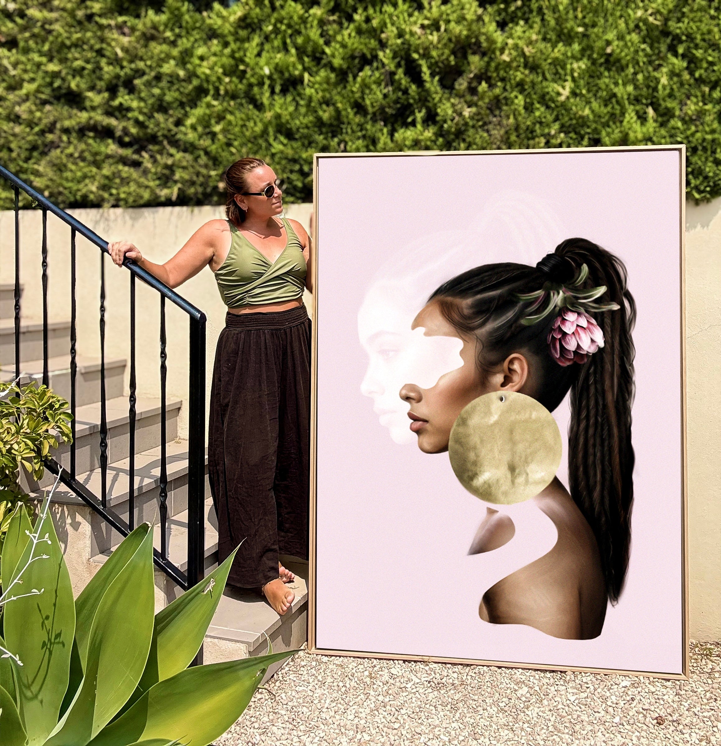 Anine er en fargerik og stilren kunstplakat som utstråler selvtillit, styrke og lekenhet. Med varme toner og feminine detaljer i rosa og gull, skaper dette motivet et unikt blikkfang i ethvert rom. Den håndtegnede stilen kombinert med collage-elementer og gulltekstur gir plakaten en eksklusiv og moderne touch. Perfekt for deg som ønsker å tilføre personlighet og kunstnerisk dybde til hjemmet ditt.