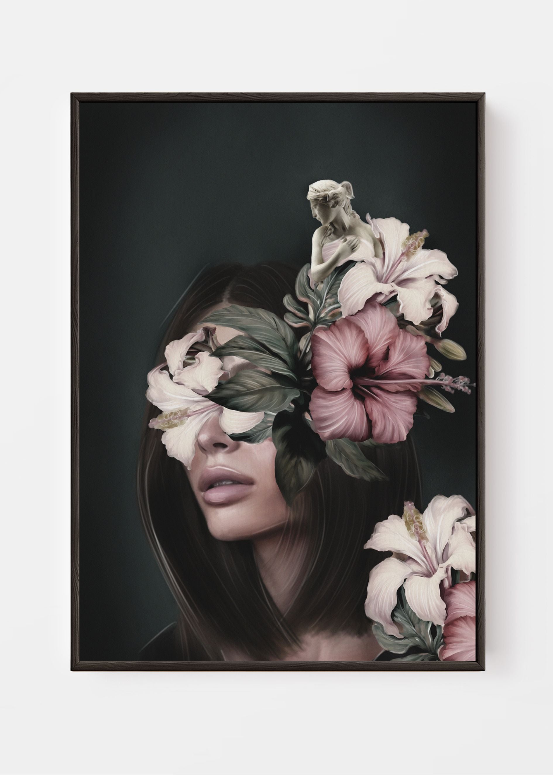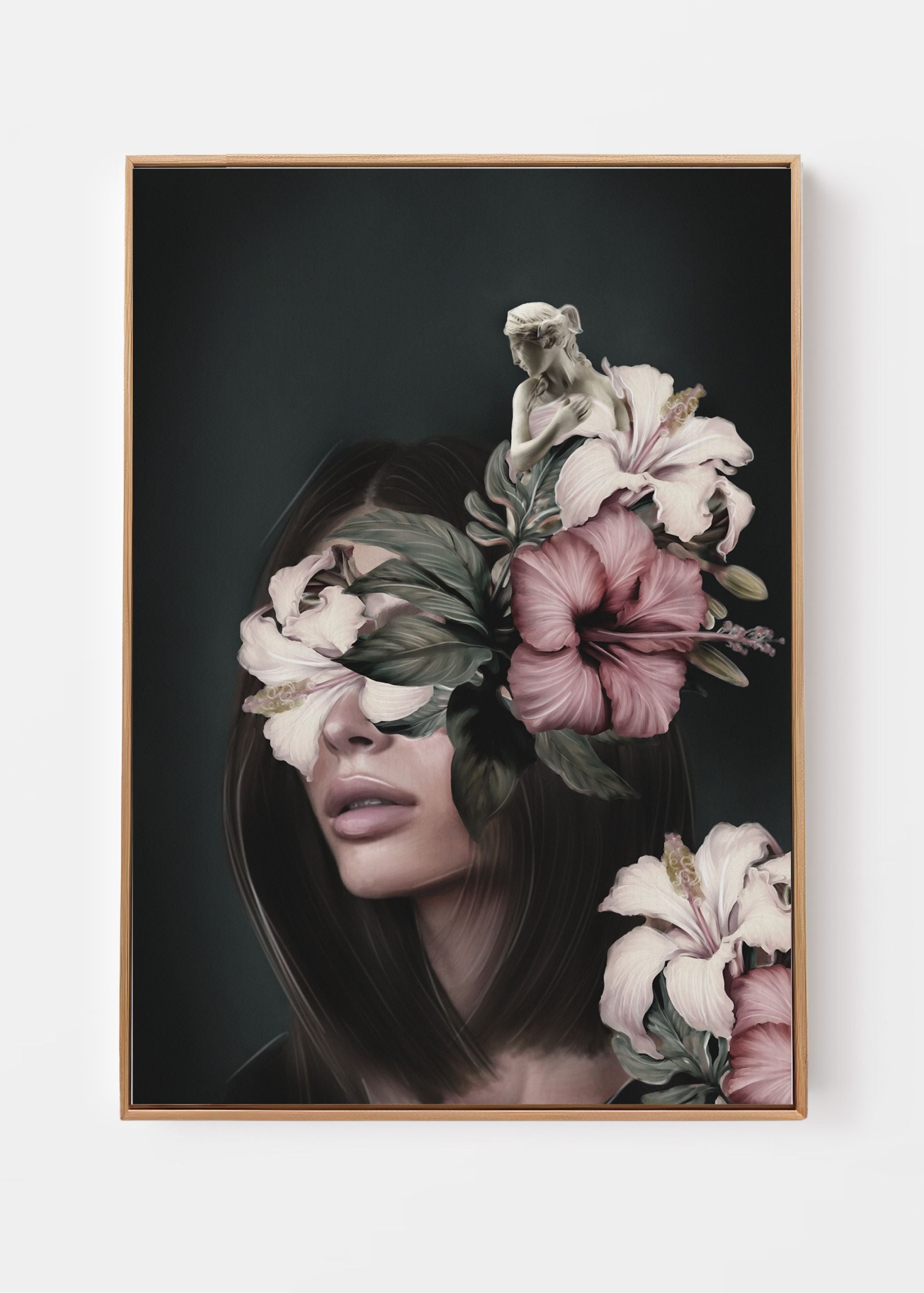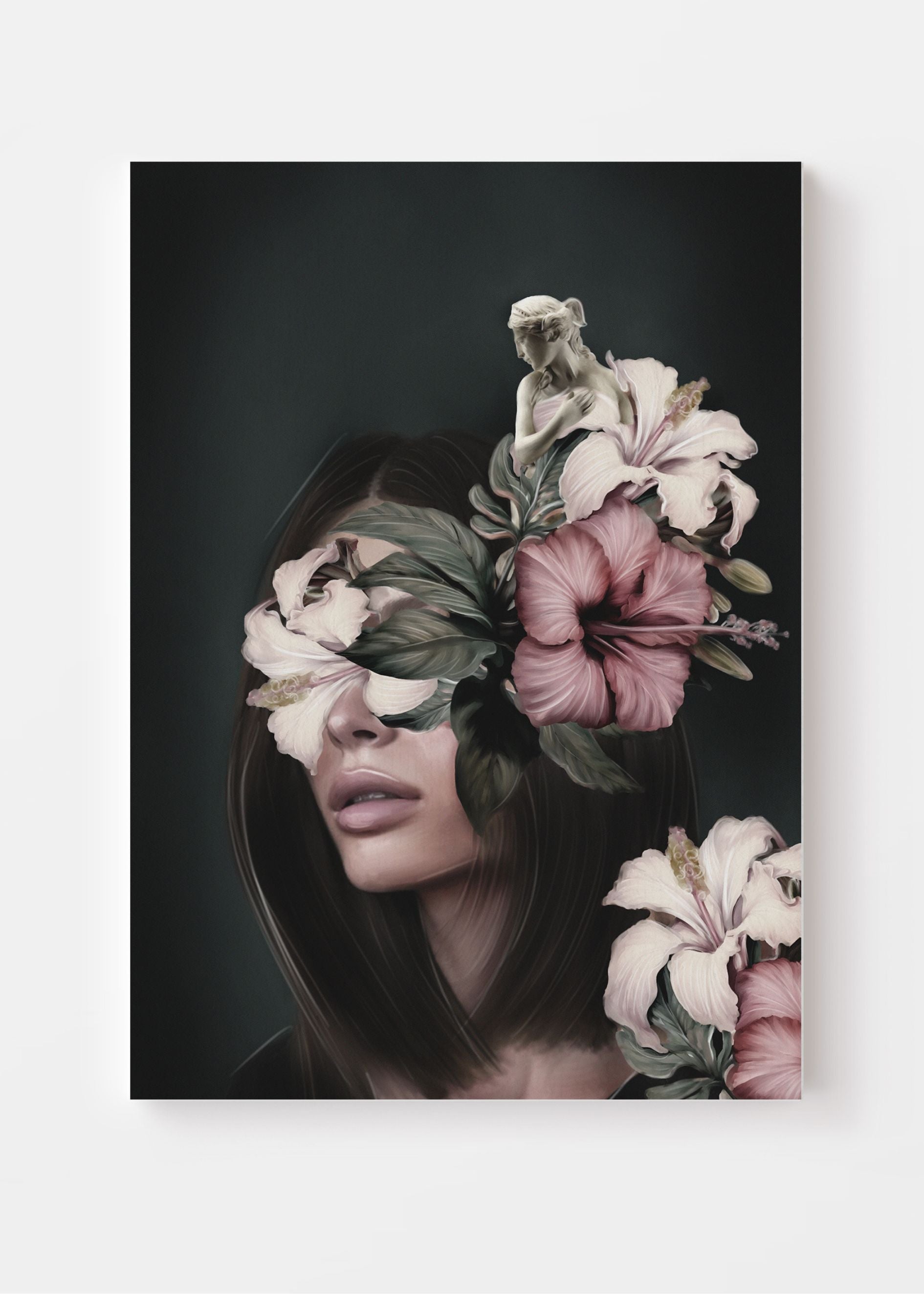 Nydelige Valeria på lerret! Med sine rosa- og grønntoner i kontrast mot det mørke, gir hun en dramatisk men stilfull effekt. Legg merke til detaljene - denne gjør seg fint i stor størrelse som et statement på veggen.